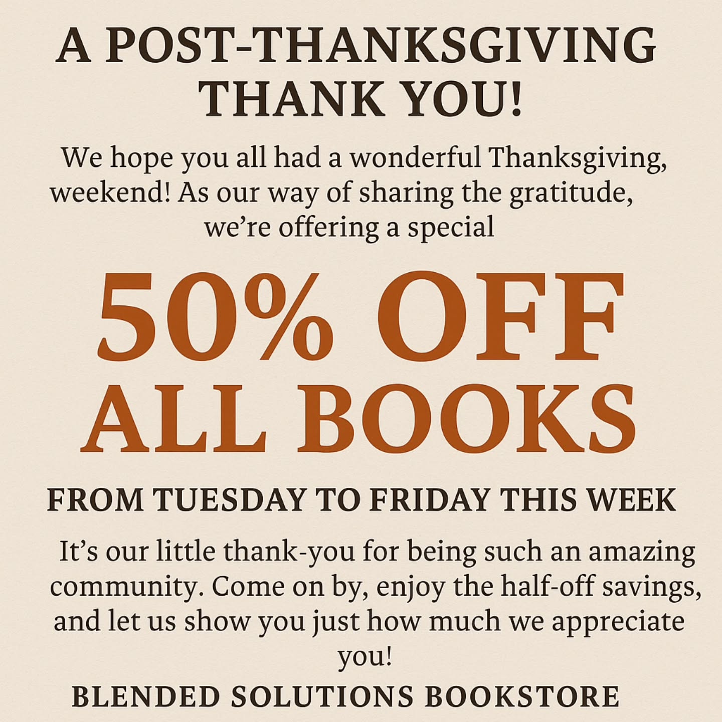 We’re Blended Solutions — your one-stop spot for bookkeeping, used books, co-working space, Bitcoin help, massage & therapy services, workshops, and local vendors like Resting Beef Face.